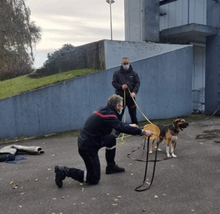 Petite séance sympathique avec les pompiers de la région Hauts de France. Approche d’un chien réactif et isolement de l’animal lors des interventions.